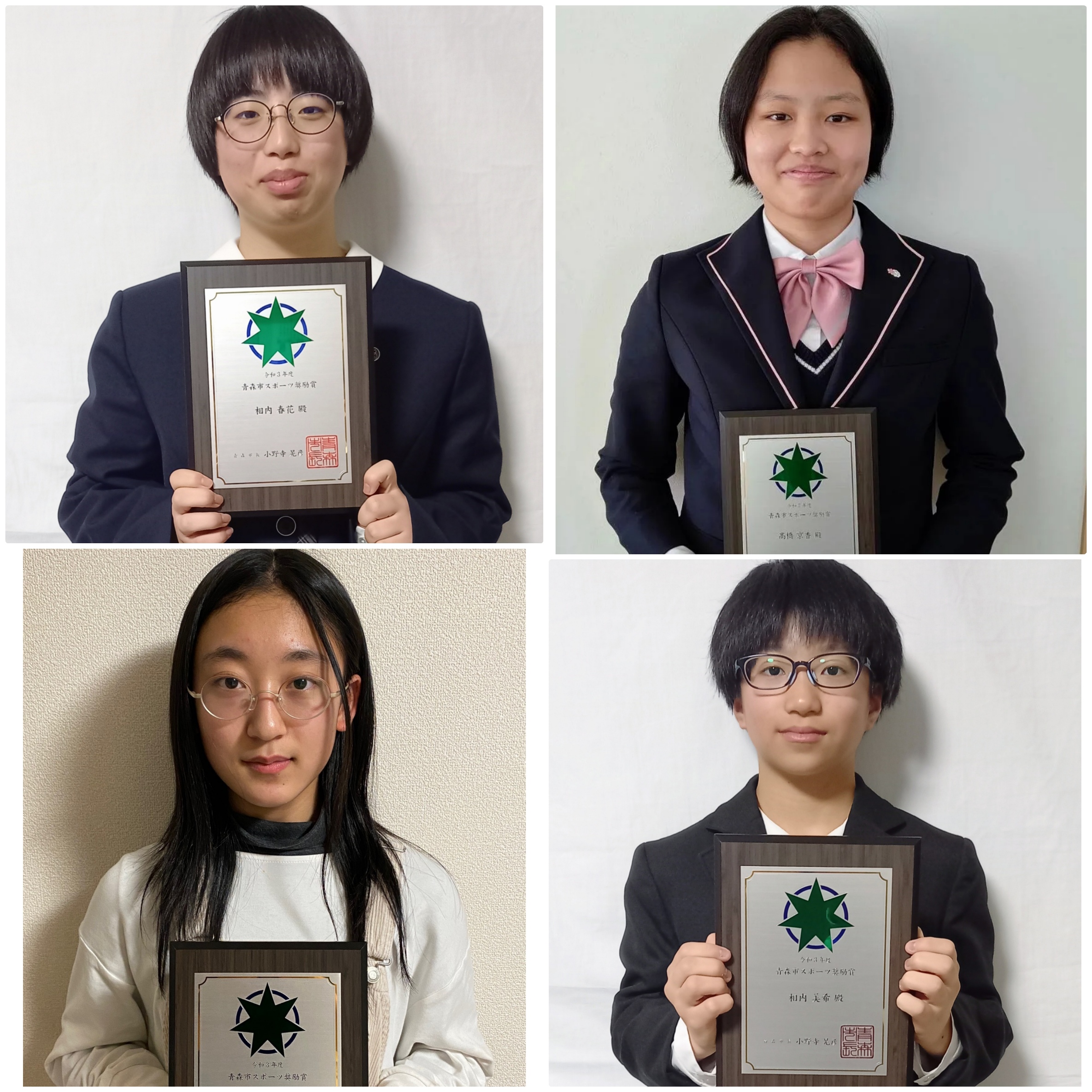 2022.03.09 青森市・つがる市より5名の選手が表彰されました by daido 昨年度行われた県内の各種競技団体のうち、空道の全国大会と東北大会で優勝した青森市4名、つがる市1名の選手がそれぞれ表彰されました。 表彰式は、新型コロナ感染拡大の影響で中止になり各学校単位での授与となっています。 つがる市スポーツ栄誉賞(最高賞):奈良朋弥選手(青森支部所属) 青森市スポーツ奨励賞:相内春花、髙橋京香、相内美希、吉田紗埜(いずれも青森支部所属) Related Posts 2022.03.02 2022全日本空道ジュニア選手権大会特設ページ作成 2022.03.04 大道塾内弟子・寮生募集要項 2022.03.02 2022全日本空道ジュニア選手権大会特設ページ作成