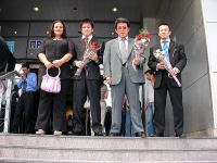 左からディンコ(ブル)、アポトリス(ギリ)、塾長、(セル) |