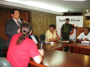 | 昨年(2005)の世界大会に来て、都教育長を訪問したカリ市体育局長 | |