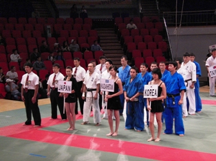また、モンゴル選手に多く見られた「極め」の動作への貪欲さは見習わねばならないと思いました。ともすれば綺麗な投げの後を除くと、たとえ床に背を付けた状態であっても顔面の防御がおろそかになりがちです。モンゴルの選手は不格好な投げの後でも、相手に対し自分が優位な体勢(立った状態)にあると、すかさずそのがら空きの顔面へ極めの動作を狙ってまいります。あまりにも顔面が無防備であるため、今大会では自分も副審として「効果」の判定を下したことが度々ありました。実際のダメージがはかれないため、「極め」によるポイントは審判によって取ったり取らなかったりする場合がありますが、やはり気合いを込めた「極め」には良い印象を持ちます。世界大会ともなると実力差が伯仲し、細かいポイントの取り合いになる場面も多くなると思います。「極め」の重要性も再認識する必要があると存じます。
