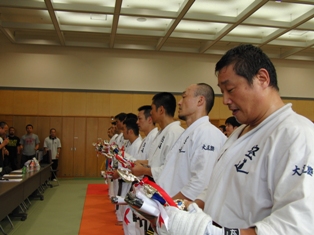 【大会講評】全国総運営委員長・新宿支部長 高橋英明 「特に顔面ルールの皆さんはノーガードでの打ち合いは避け、パンチを出したら片方の腕でしっかりガードする等今後防御の技術を向上させる練習を行ってください。黄帯以下の皆さんは一日も早く格闘・空道ルールの級にいけるよう稽古に励んでください。」