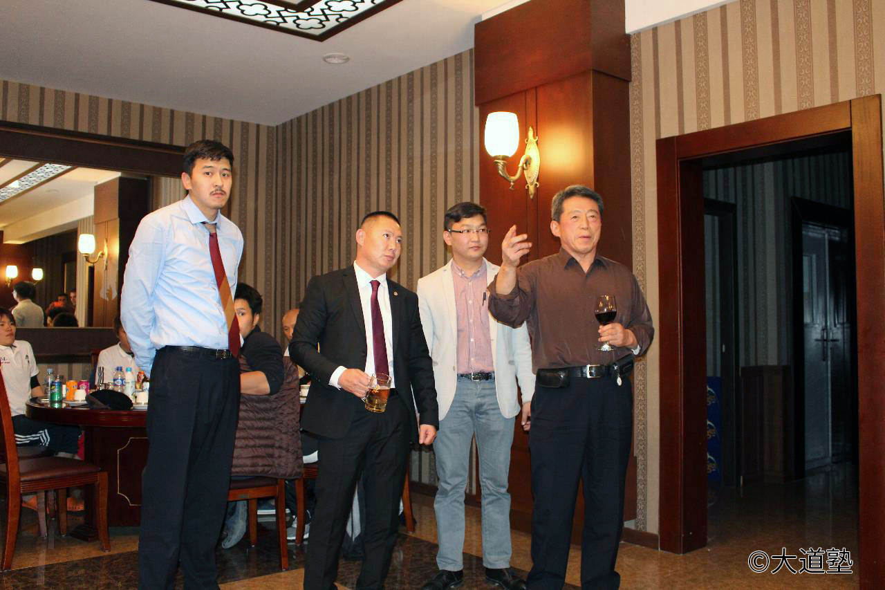モンゴルチーム、支部長を囲んで反省会。カメラを向けるまで張りつめていましたが…(怖)