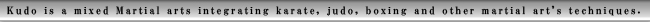 KUDO is a 武道“BUDO”, not just sports to compare “who is the best”. It is the most important that an ordinary parson (Like a business parson, a student. Not a professional fighter) is able to become“better” not only physically, but also mentally. Today, KUDO is very popular as a physical education system.